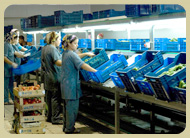 Ürünler kalibre edilip, geri dönüşümlü kasalara paketlenir.